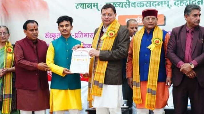 देहरादून: सीएम धामी ने संस्कृत छात्र प्रतिभा सम्मान कार्यक्रम में विद्यार्थियों को प्रदान की छात्रवृत्ति