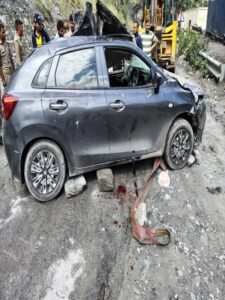 जोशीमठ (सीनियर रिपोर्टर)। उत्तराखंड के जोशीमठ क्षेत्र में सोमवार को एक दर्दनाक हादसा हो गया जब पातालगंगा के पास एक बलेनो कार पर अचानक पहाड़ी से भारी पत्थर गिर पड़े। हादसे की जानकारी मिलते ही एसडीआरएफ और जिला पुलिस की टीम मौके पर पहुंची और तुरंत संयुक्त रेस्क्यू ऑपरेशन शुरू किया गया।